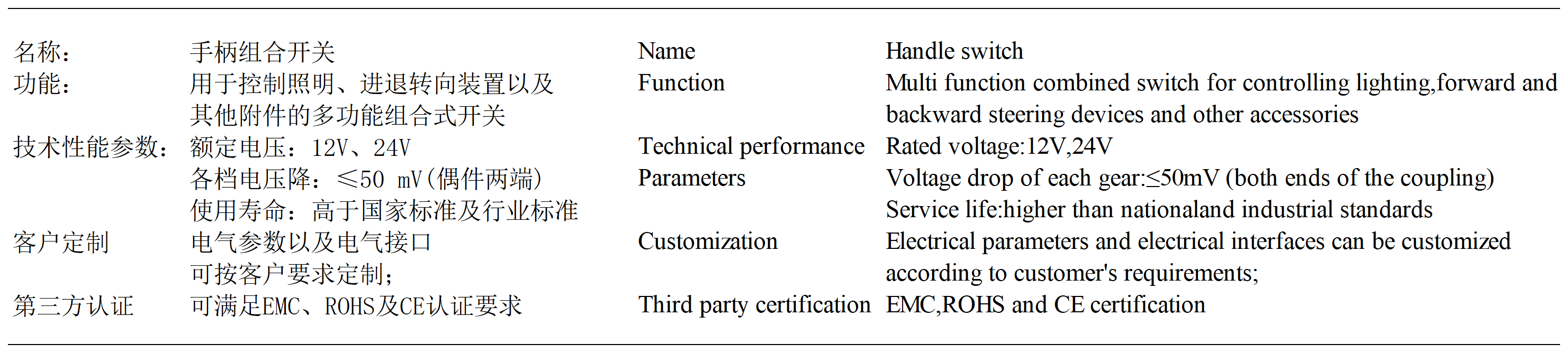 內燃雙柄組合開關